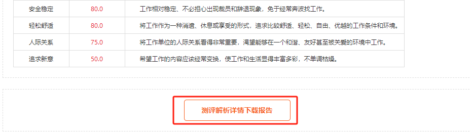 4.第四部分题目完成后,点击“提交试卷”按钮,即可直接查看测评报告;在测评报告最下方,有“测评解析详情下载报告”按钮,点击按钮可下载报告。