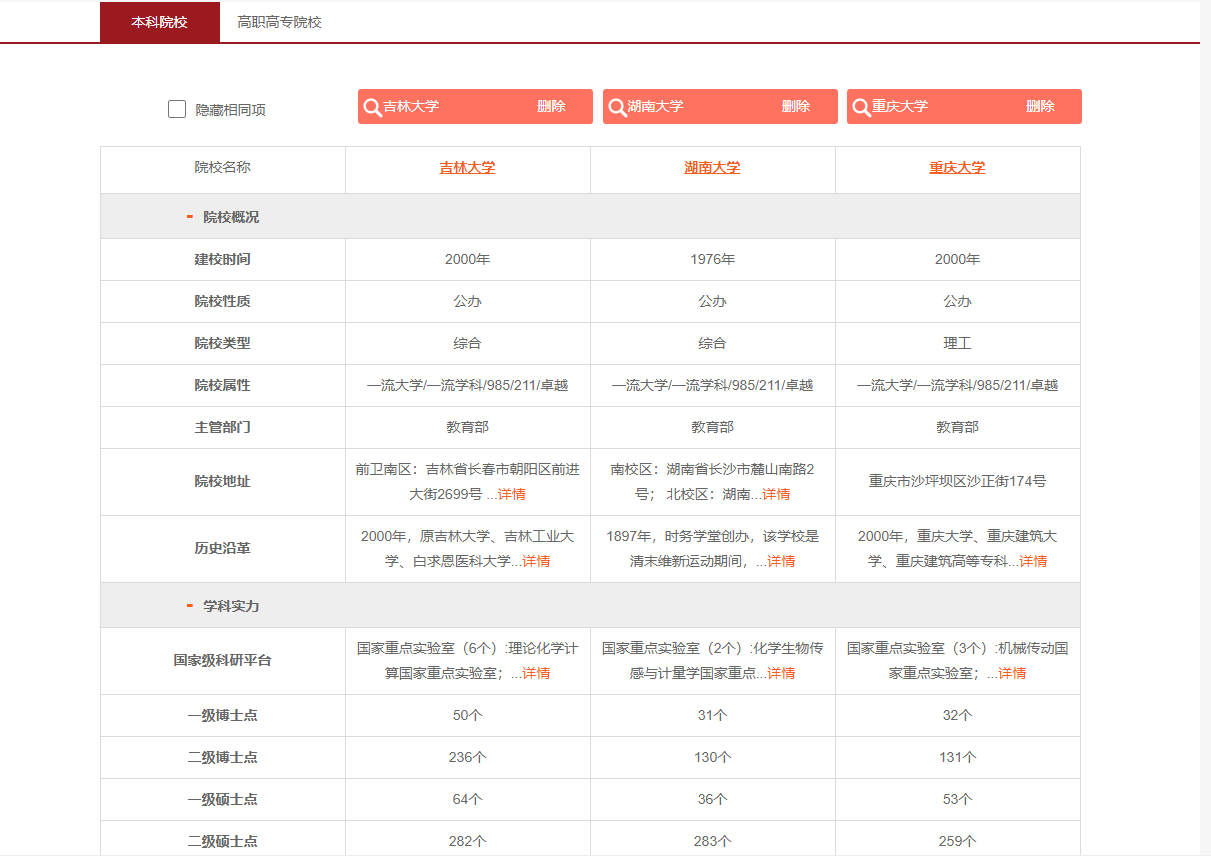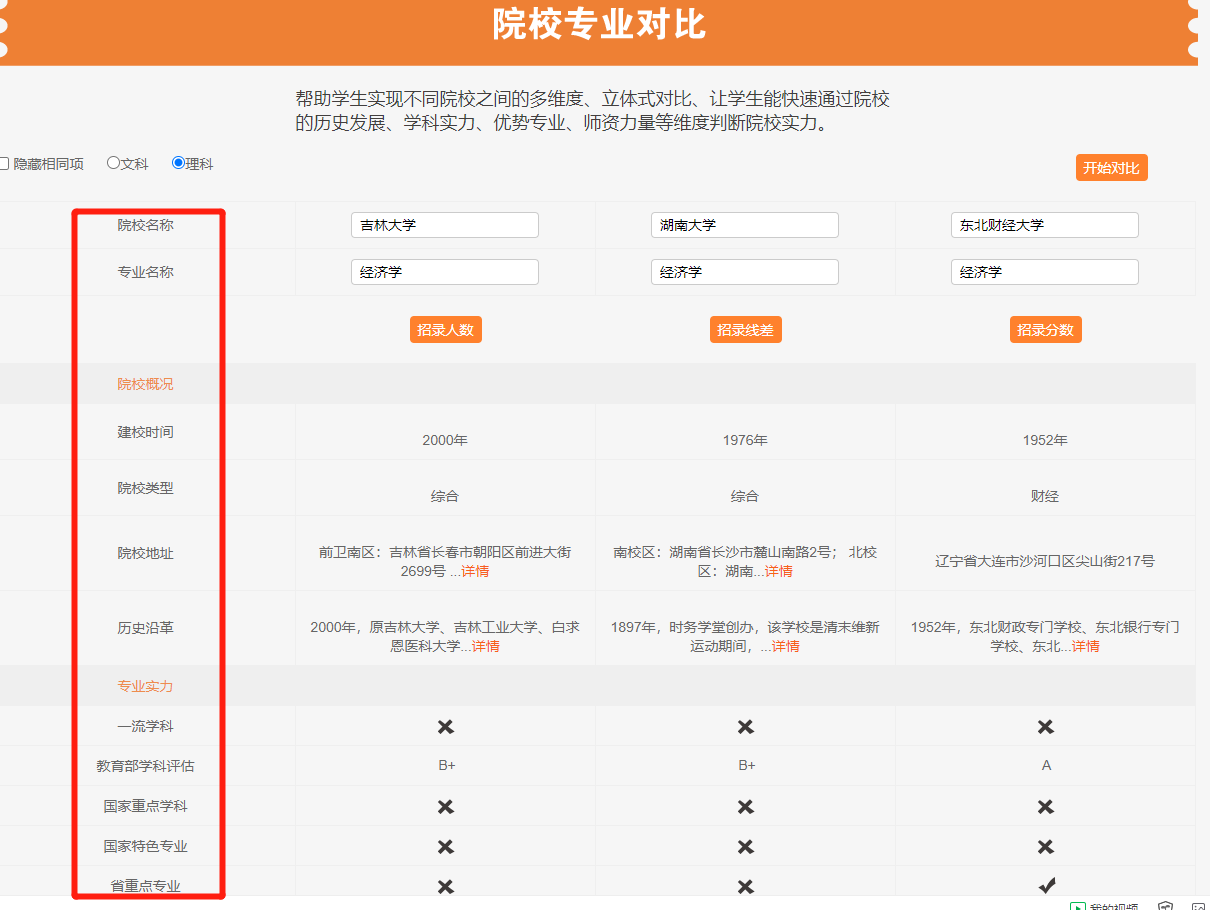 五、院校专业对比