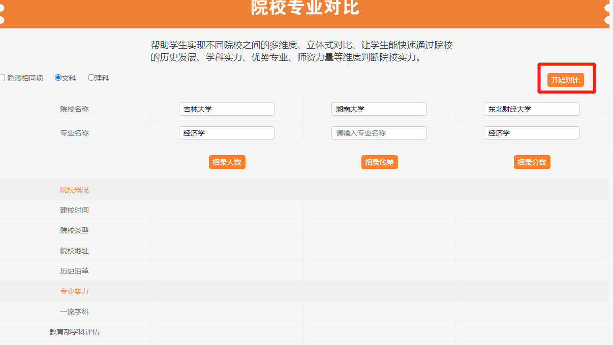 1.点击“院校专业对比(开始)”。
