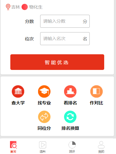 1.功能:查询、选科、测评等微信小程序端的所有功能。