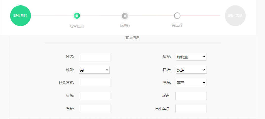 1.功能:本职业测评系统包含性格、能力、职业兴趣和职业价值四大维度个人特质测评内容,结合职业情况和大学专业,对学生的职业发展方向、专业选择做出综合评定。